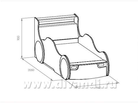 Бортик безопасности кровати-машинки, также являющийся декором, защитит от падения.Дополнительно можно заказать: комод=5810р; стол=5690р; шкаф=8880р; комплект шин=4320р.