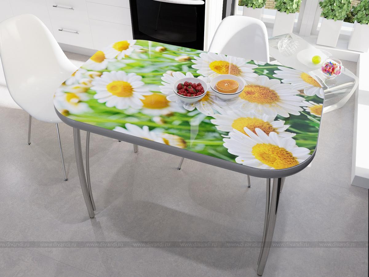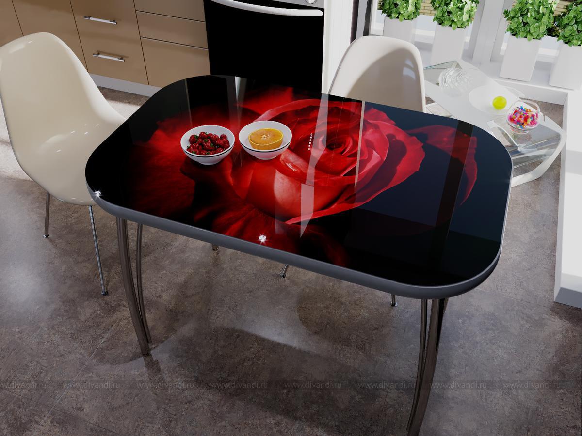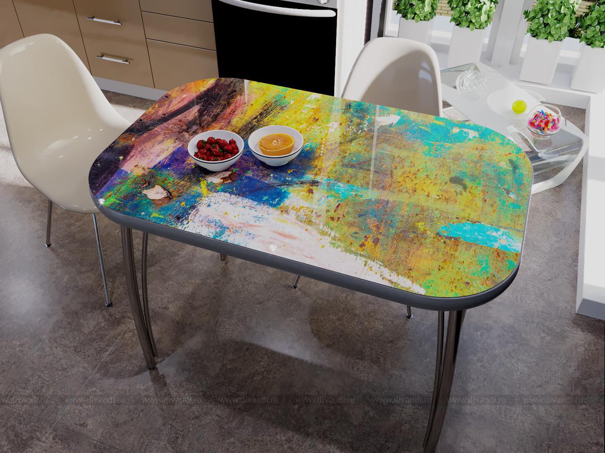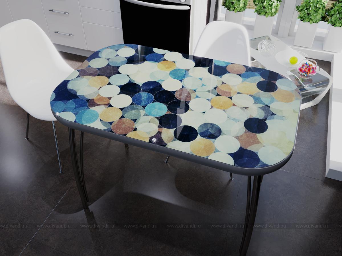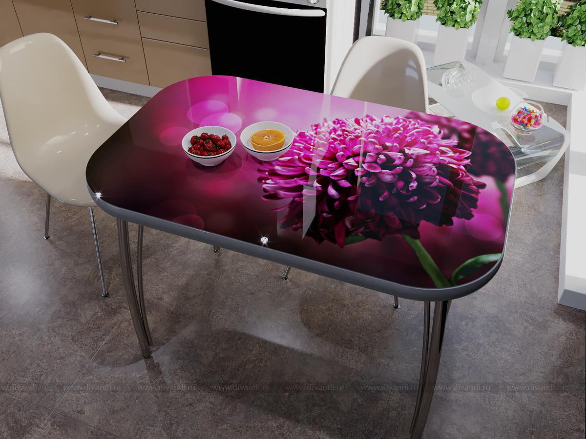 - Стол со стеклом и фотопечатью станет ярким акцентом на вашей кухне.