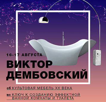 «Культовая мебель XX века» и «Ключ к созданию эффектной ванной комнаты» – две интереснейшие 6-часовые лекции Виктора Дембовского, историка архитектуры и дизайна, члена Московского союза художников и Международного творческого союза художников, преподавателя МГХПА им.Строганова и Международной школы дизайна. Занимается популяризацией творчества Чарльза Ренни Макинтоша в России. Работает в области дизайна интерьеров, графического дизайна и монументально-декоративной живописи.