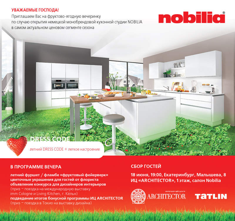 18 июня 2014 года в 19:00 приглашаем на фруктово-ягодную вечеринку по случаю открытия немецкой монобрендовой кухонной студии Nobilia в самом актуальном ценовом сегменте сезона!