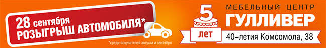 Мероприятие состоится 28 сентября 15:00 в мебельном центр «Гулливер» по адресу ул. 40-летия Комсомола, 38.