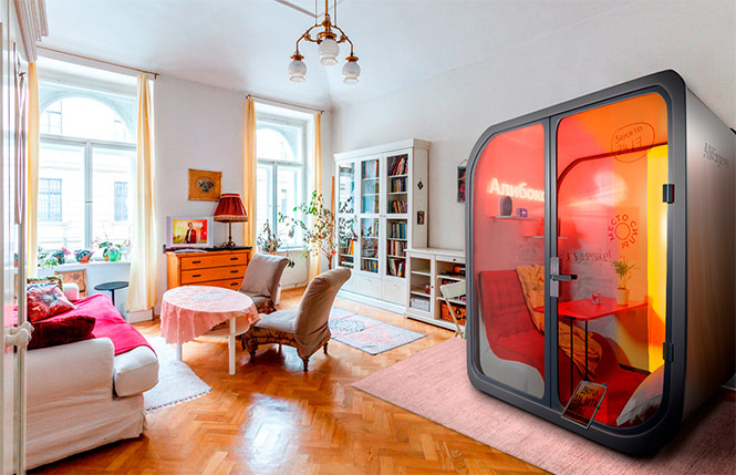 «Алибокс» — капсула для социального дистанцирования в пределах квартиры — создана специально для российского покупателя. Внутри бокса из звукоизоляционных панелей предусмотрено место для работы и отдыха, оснащенное LED-освещением с датчиком присутствия, розетками, бесшумной вентиляцией, складным столом и мягким сиденьем. В «Алибоксе» предусмотрена мини-дверь для кота.
