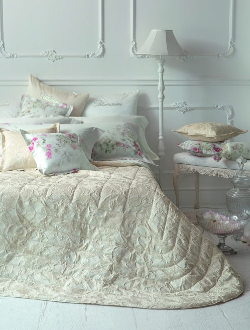 Как замечают в компании, в покрывалах и постельном белье Blumarine сочетается итальянский шарм, лоск и безупречное качество. Нежнейшие кружева, ручная вышивка, кристаллы Swarovski используются дизайнерами для украшения дорогих тканей.