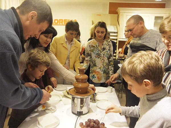 По-семейному тёплая атмосфера располагала к общению и отдыху. Гости вечеринки узнали, что такое чайная карта, угостились разными видами элитного чая. Блеснуть знаниями о чае и о кухнях LORENA всем удалось во время викторины. А азартная подвижная игра позволила гостям открыть секреты внутреннего наполнения гарнитуров. И, конечно же, были призы победителям, подарки всем гостям. В завершение, на сладкое, гостей ждал шоколадный фонтан и ароматный чай «Матэ».