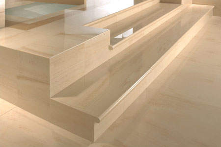 Изделия BLANCO PERLA Pulido от Venatto однородны, они не покрываются глазурью, поверхность материала отполирована до зеркального блеска. Ступени Venatto применяется в отделке помещений, когда к дизайну, прочности и долговечности материала предъявляются высочайшие требования. Авангардная технология производства позволяет выпускать цельные ступени размером до двух метров в длину.