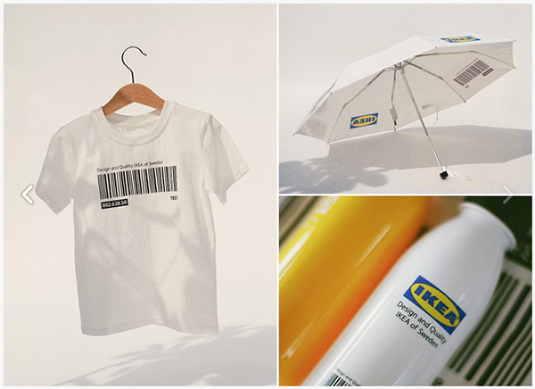 В коллекции фигурируют два мотива. Первый — с узнаваемым во всем мире желто-синим логотипом IKEA, второй — с черным штрихкодом и подписью «Design and Quality IKEA of Sweden».
