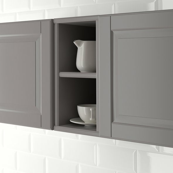 Новинка шведского бренда порадует всех любителей и обладателей кухни БУДБИН. В магазинах появились открытые стеллажи — ТОРНВИКЕН. Стеллажи представлены в тех же оттенках, что и кухни, — белом и сером.