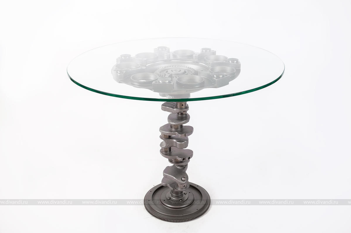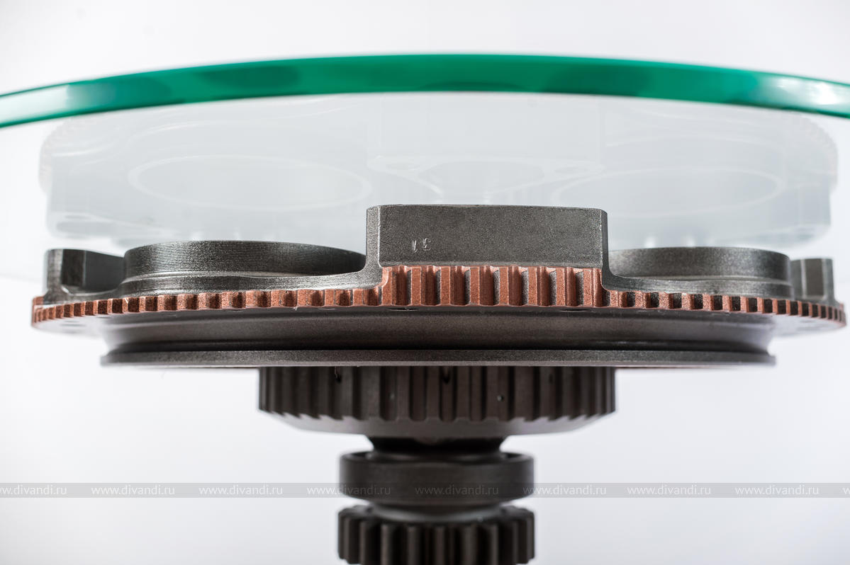 Для сооружения кресел, столиков, светильников и предметов декора используются части машин и механизмов и другие, не менее брутальные комплектующие – главным образом из стали и стекла. Это могут быть шестерни, коленвалы, элементы трансмиссии и цепи Галля. Каждое изделие мастерской компонуется индивидуально из уникального набора деталей. Тиражирование практически невозможно.