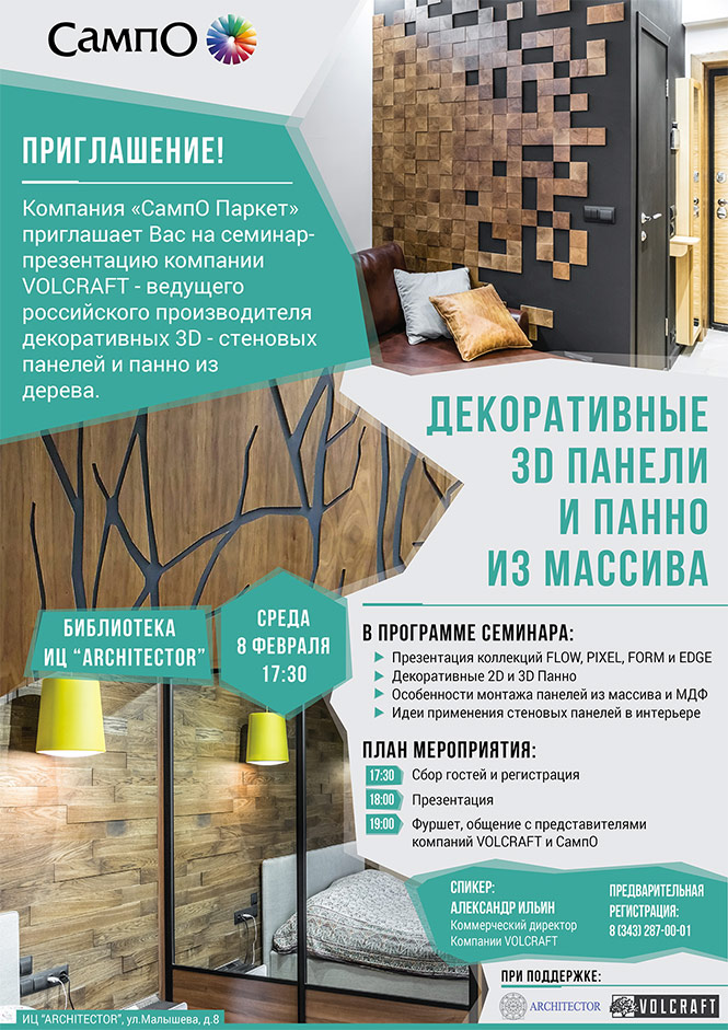Компания «Сампо Паркет» проведёт семинар по стеновым панелям Volcraft