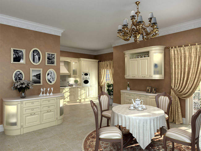 Витиеватые узоры с растительными элементами – отголоски Ренессанса, но в целом благодаря внутреннему наполнению и технологиям ваша новая кухня приобретет современное звучание.