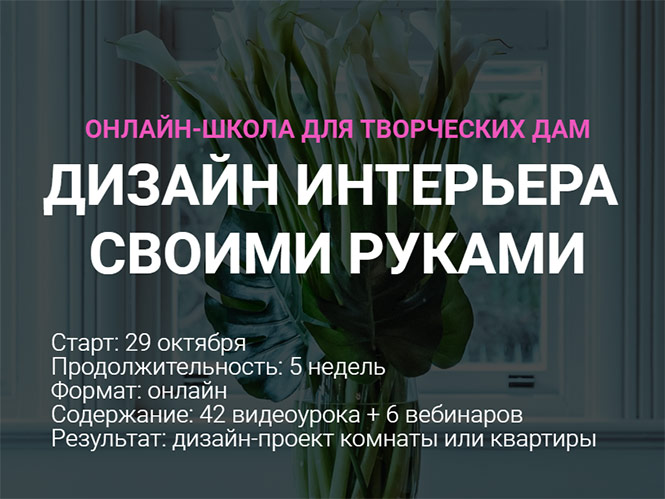 29 октября стартует новый поток «Онлайн-школы для творческих дам», в которой любой желающий сделает интерьер своими руками. Продолжительность обучения — месяц.
