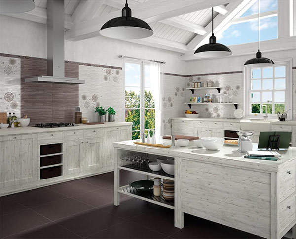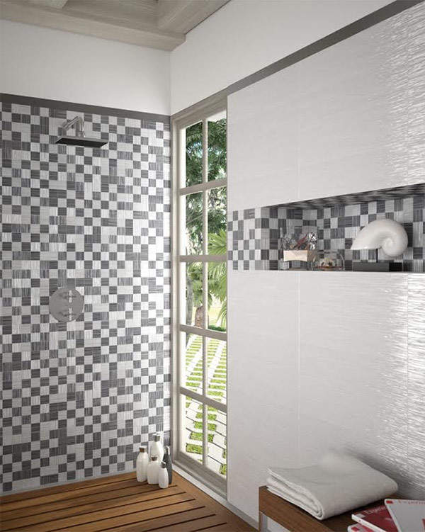В основу коллекции легло четыре базовых цвета: белый, бежевый, серый и коричневый, которые обыгрываются в облицовочной плитке и декоративных элементах.