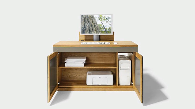 Интерьерный мебельный салон Munchen-Berlin презентовал рабочий стол cubus от бренда TEAM7. С виду стильный лаконичный комод всего с помощью пары действий может превращаться в полноценное рабочее пространство.