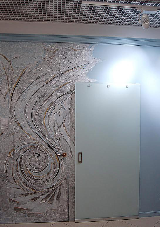 - оформление «потайной двери» и стены при помощи различных техник с использованием декоративных штукатурок, масляных красок, акрила, позолоты и других материалов.