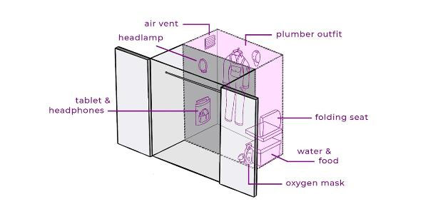 В таком шкафу есть место для вешалок и полок, а также скрытое отделение. Здесь предусмотрено почти все: откидывающийся стул, питьевая вода, планшет с музыкой и даже кислородная маска для любовника, чтобы ему было удобно коротать время, ожидая, пока муж уйдет. А также есть костюм сантехника — на случай, если его все-таки обнаружат и придется объяснять, что он тут делает.