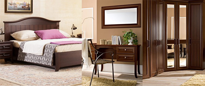 Каждая из коллекций включает в себя широкий ассортимент элементов: кровати, комоды, тумбы, шкафы. Мебель изготовлена из ЛДСП, МДФ и массива дерева.