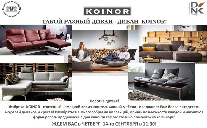 Фабрика Koinor предлагает более пятидесяти моделей диванов и кресел. Эксперты помогут участникам бранча разобраться в многообразии коллекций, понять возможности каждой и научиться формировать предложение для клиента.