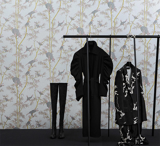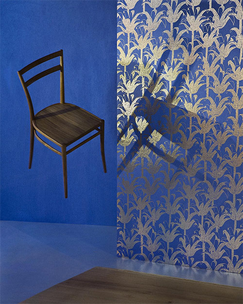 Автор коллекции Алексия де Вилль в качестве материала для обоев взяла нетканый текстиль с нарочито видимыми волокнами, что создает фактурный фон. Для панорамных панно, которых в каталоге 4 (представленных в нескольких цветовых вариациях), она предлагает большие принты в множестве цветов.