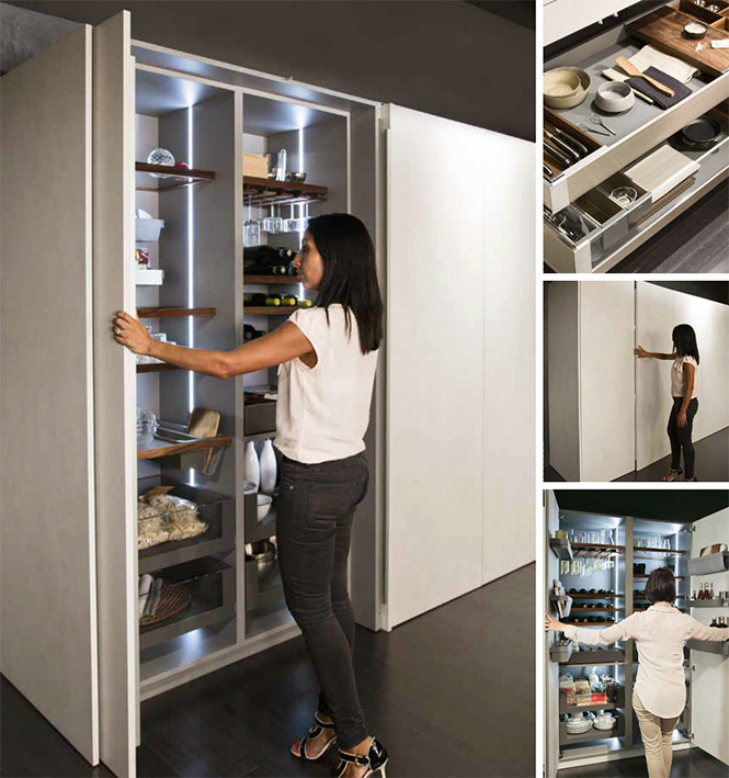 Вот, что говорят о новинке её разработчики: «На кухне ценится каждый сантиметр. Каждый из нас обладает собственным вкусом и чувством порядка. Поэтому шкафы кухонной мебели Snaidero каждый сможет оснастить по своему вкусу, выбрав фурнитуру для хранения и бытовую технику».