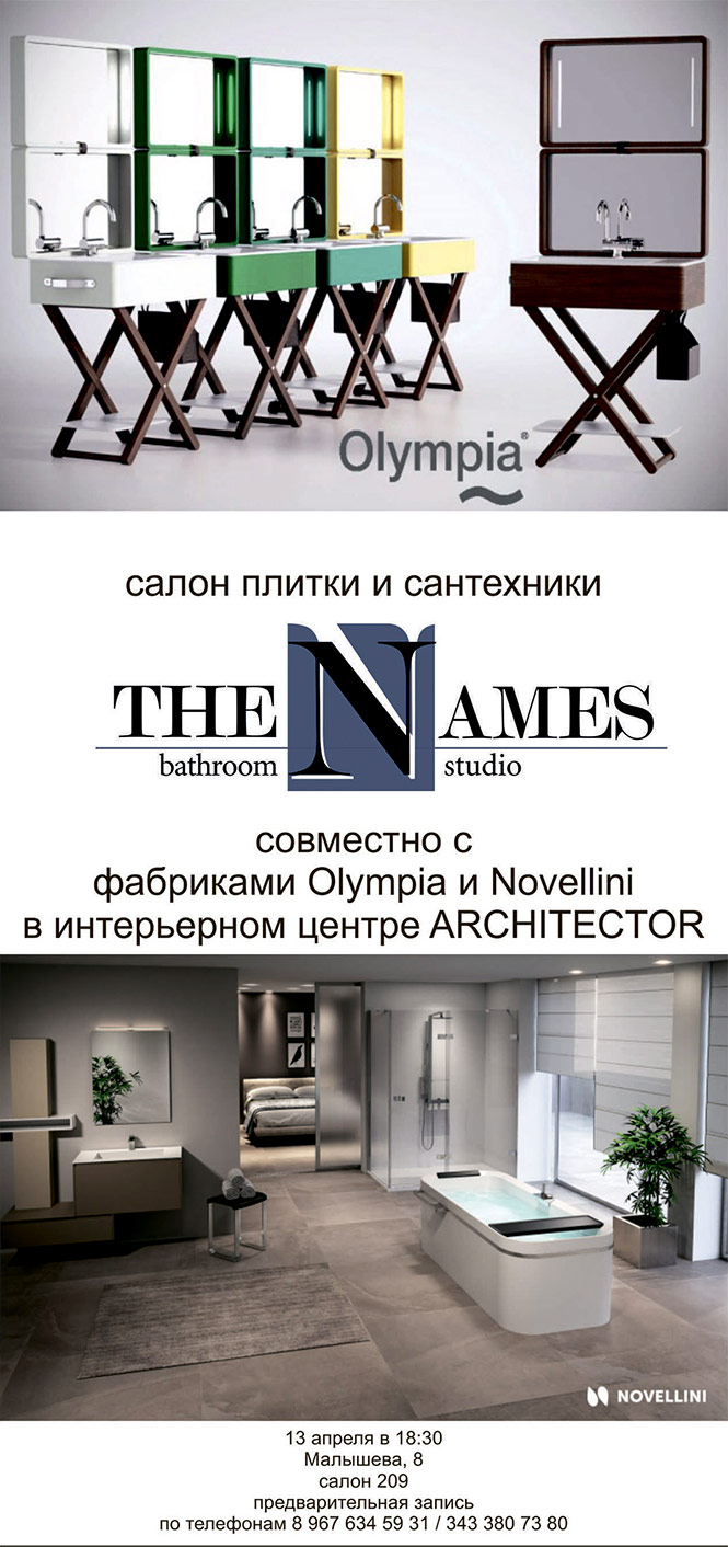 Салон плитки и сантехники The Names 13 апреля 2017 года проведёт презентацию итальянских фабрик элитной сантехники Novellini S.p.a. и Olympia Ceramica.