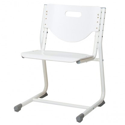 Имеется регулировка высоты сиденья от пола - 335, 395, 435, 475 мм. Цвет сиденья и спинки стула — белый. Высота спинки, высота и глубина сидения регулируются под рост ребенка от 115 до 190 см.