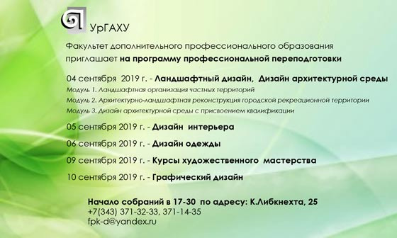 - 4 сентября 2019 года состоится организационное собрание по программе профессиональной переподготовки «Ландшафтный дизайн, Дизайн архитектурной среды».