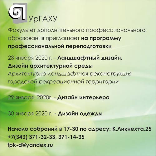 - 28 января 2020 года состоится организационное собрание по программе профессиональной переподготовки «Ландшафтный дизайн, Дизайн архитектурной среды».