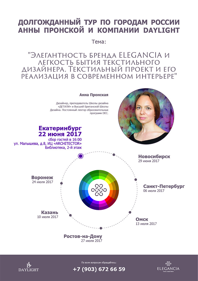 22 июня 2017 года в библиотеке ИЦ ARCHITECTOR пройдет лекция на тему «Элегантность бренда ELEGANCIA и легкость бытия текстильного дизайнера.