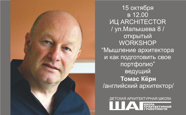 Детская Архитектурная Студия ШАГ и ИЦ ARCHITECTOR 15 октября 2016 года проводят workshop (мастерскую) «Мышление архитектора». Для участия в ней приглашаются студенты и выпускники в возрасте от 14 до 25 лет.
