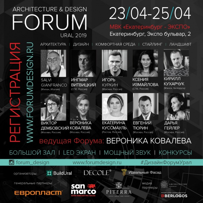 Впервые в рамках выставки строительных, отделочных материалов и инженерного оборудования Build Ural, с 23 по 25 апреля 2019 В МВЦ «Екатеринбург-Экспо» состоится Форум дизайнеров и архитекторов Урала.