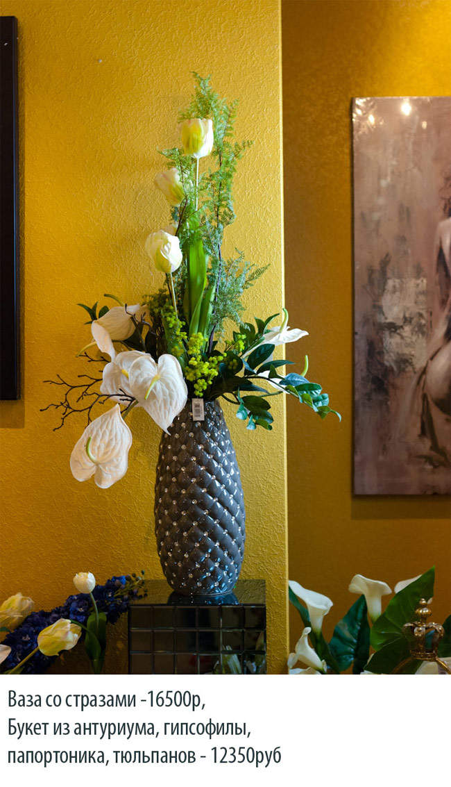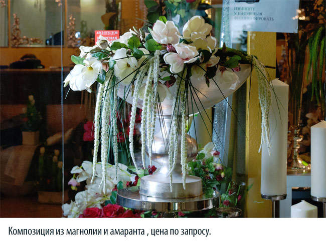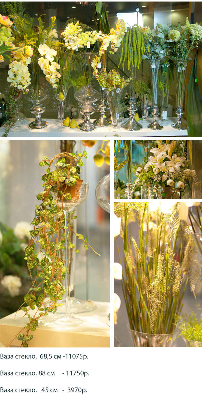 - Декоративными цветами из шелка самых модных оттенков и цветочные композиции в соответствии с последними тенденциями европейских коллекций Весна-Лето 2012;