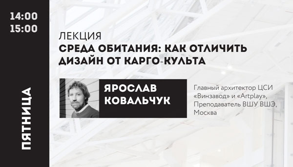В пятницу – 17 числа – Ярослав Ковальчук сделает выступление на тему: «Среда обитания: как отличить Дизайн от Карго-культа» Начало в 14.00.