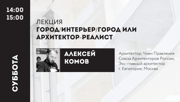 В субботу – 18 числа – Алексей Комов прочитает лекцию: «Город/интерьер/город или Архитектор-реалист». Начало в 14.00.