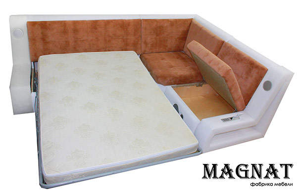 Стоит отметить, что это первый «Музыкальный» диван в Екатеринбурге, до этого подобные модели производители только в Москве. Кроме аудио системы «Магнат 8» порадует любителей крепкого сна. Ведь он оснащен большим спальным местом, с комфортным матрасом высотой 12 см, обладающим ортопедическим эффектом.