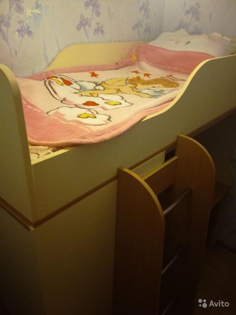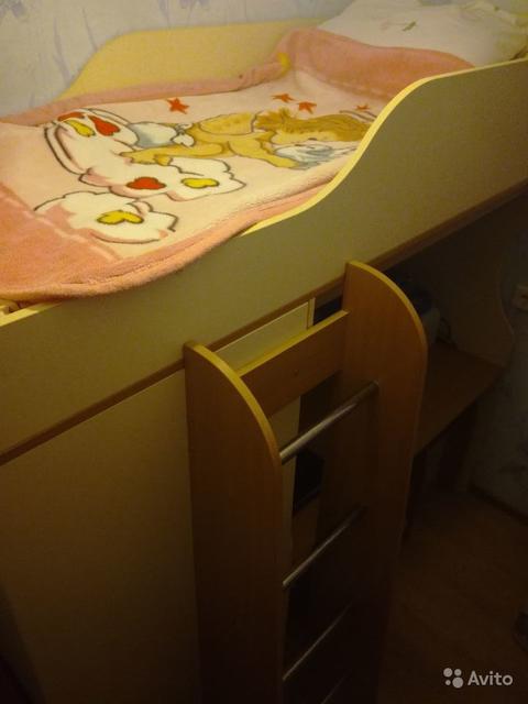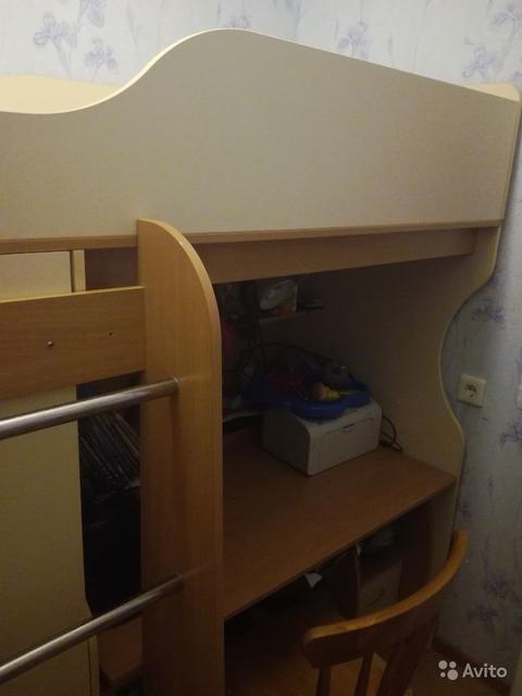 Продам детскую кровать-чердак, в отличном состоянии. Состоит: кровать, шкаф-купе (разделен на две части: полки и место для вешалок), учебное место (письменный стол, полка для клавиатуры, место для системного блока, полка для книг и тумбочка). Стол не прикреплен к конструкции, поэтому его можно передвигать, что очень удобно. Для безопасности ребенка во время сна встроены высокие бортики. Модуль очень удобен, компактен, ребенку интересно подниматься и спать на «втором этаже» )) Длина - 185, ширина - 85, высота - 183.