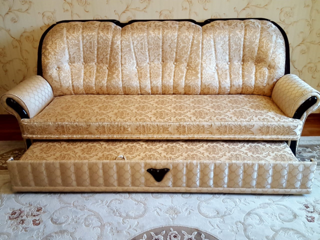 С связи с отъездом продам диван раздвижной в красивой расцветки золотой. Б// 4 месяца Вообще не использовался по назначению. Торг уместен