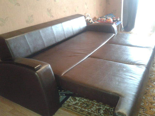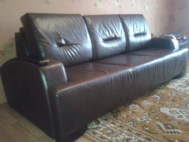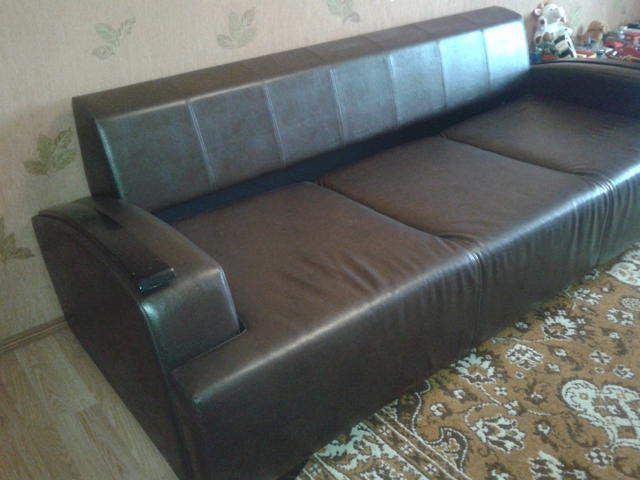 Отличный диван из эко-кожи шоколадного цвета, удобный и вместительный, большое спальное место, надежный механизм - пума, не требует специальной чистки, достаточно влажной уборки, состояние хорошее. Размеры: ширина- 108см., длина- 240см.