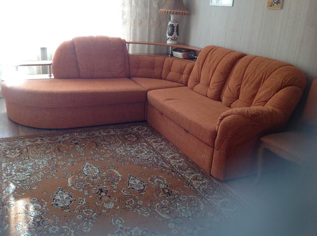 Мягкий угловой диван для гостиной, имеется ящик для белья, в разобранном состоянии размер 2х2, состоянии хорошее