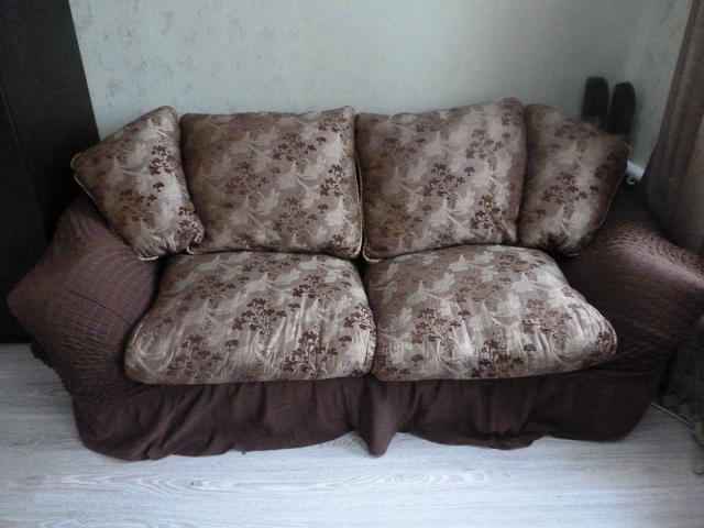 Продам комплект мягкой мебели б/у диван (раскладной механизм раскладушка) и два кресла, плюс чехлы натяжные на диван и кресла (про-во Турция).