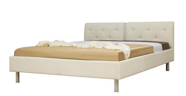 Кровать сказочно красива и роскошно элегантна, отдых на ней будет сопровождаться также эстетическим наслаждением. Изголовье украшено декоративными пуговицами, инкрустированными крупными кристаллами. Деление спального места условно дублирует изящная лента на изголовье кровати, декорированная небольшими кристаллами. Обивка изголовья мебельного изделия выполнено из искусственной кожи.