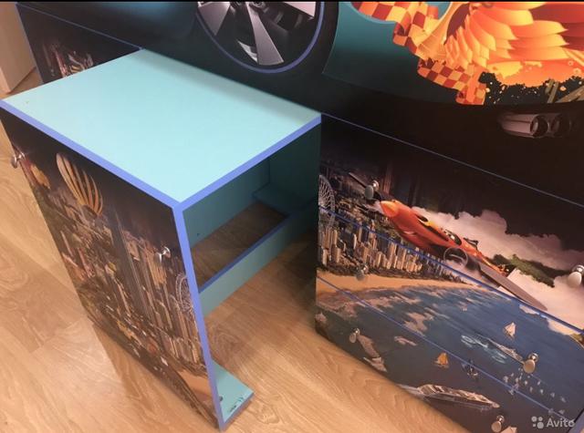 Также там входит комод из трёх глубоких ящиков, вместительный небольшой шкаф и выдвижной компьютерный стол с местом под системный блок. Матрас в подарок. Торг