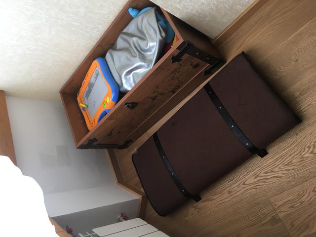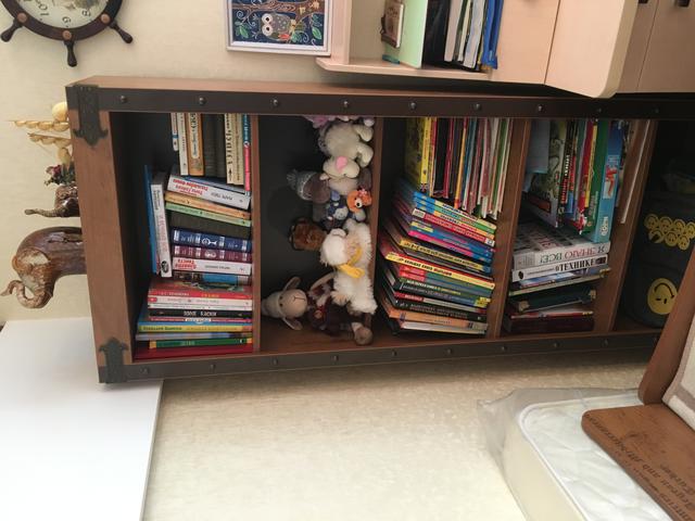 Можно приобрести по отдельности: шкаф-стеллаж 7000 рублей (цена в магазине Hoff 17000 рублей), сундук 7000 рублей ( цена в магазине 17000 рублей), кровать 20000 рублей ( цена в магазине без ограничителей для маленького ребёнка 41000 рублей).