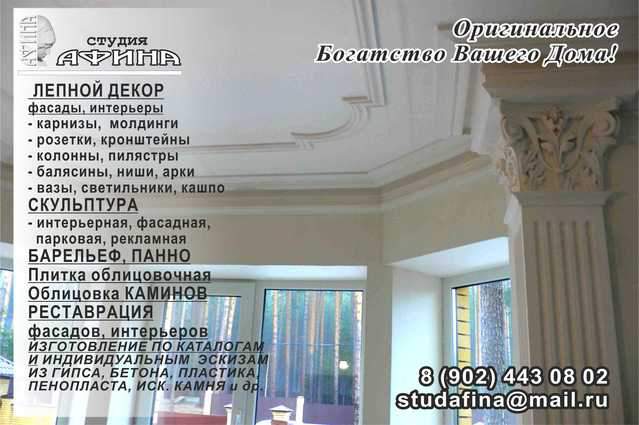 Колонны, пилястры, розетки, арки, ниши, карнизы, молдинги, кронштейны, модульоны, балясины, вазы, светильники, кашпо, облицовочная плитка.