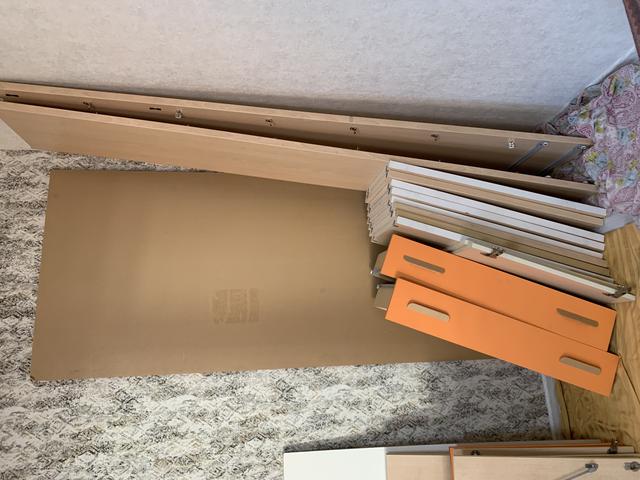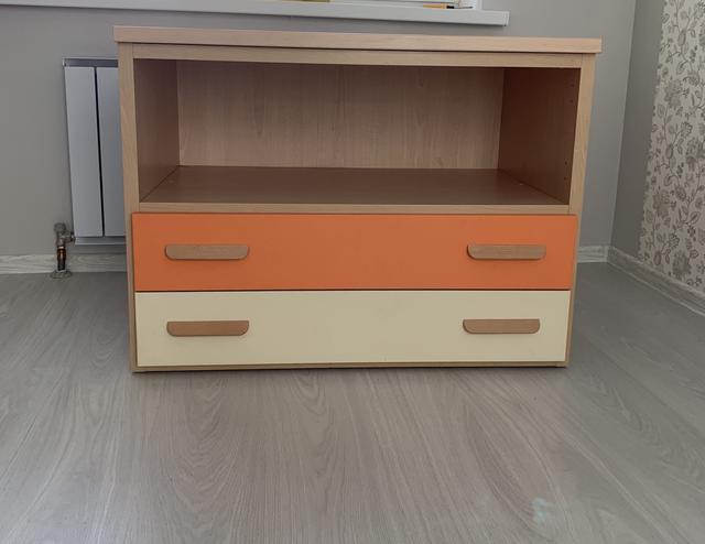 Продаю набор шкафов (служили детским гарнитуром), в который входит: подставка для ТВ, три подвесные полки, книжный шкаф, шкаф для одежды, компьютерный шкаф ( можно использовать и для другого назначения, довольно универсальный). Это один набор , материал- массив ясеня, цвет- оранжевый и ванильный. На данный момент набор находится в квартире в разборе, все части на месте, сгруппированы (на фото в схеме). Подставка для ТВ собрана. Разбор/сбор трудностей не вызывает, если что подскажем ☺️ Внутренние полки шкафа для ПК (схема 3) можно комбинировать, они также закрываются дверками, имеется возможность поставить шкаф на колесики. Комбинируются и цвета выдвижных ящичков (они двух цветов: оранжевый и ванильный). Мебель была заказана из Италии, завод Colligaris. Остальные вопросы лично , можно посмотреть непосредственно в квартире, торг на месте