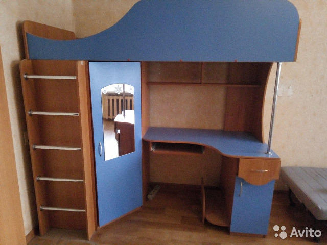 Удобный, многофункциональный комплект мебели. Вместительный шкаф, большой стол, широкая и длинная кровать. Набор б/у, в хорошем состоянии. Легко собирается и разбирается. Оплата наличными.