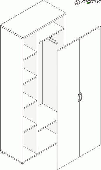 Топ из ДСП 22 мм., остальные элементы из ДСП 16 мм., кромка ПВХ 0,45 мм, регулируемые опоры, выдвижная штанга для одежды. 800х414х1962