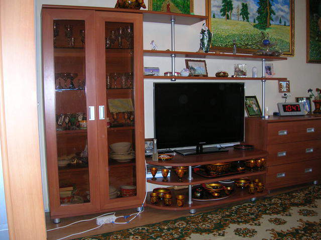 Шкаф, комод, полки.