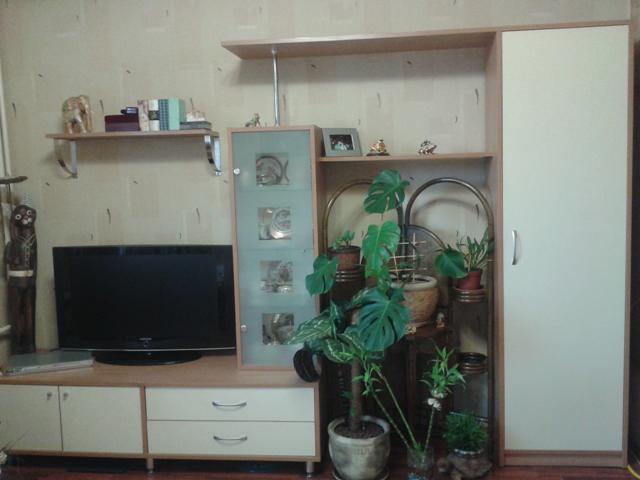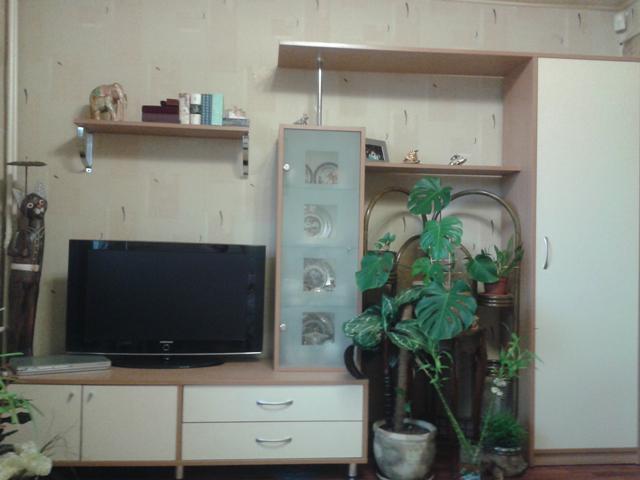 Стильная пристенная мебель. Платинной шкаф с выдвижным вешало. Витрина для посуды с матированным стеклом. Тумба под телевизор. Длина варьируется от 197,5см до 326,5см. Высота 220см.
