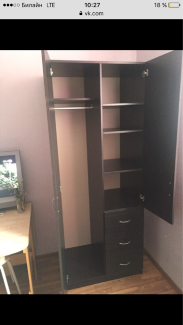 Продам шкаф из икеи, 2 створки, 3 ящика, отдел под вешалки, полки. Цвет-черный, б\у 2 месяца, продаем в связи с переездом. забирать на н.сортировке, 4000 р , торг уместен