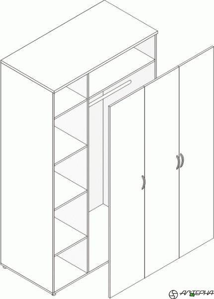 Шкаф комбинированный. Топ из ДСП 22 мм., остальные элементы из ДСП 16 мм., кромка ПВХ 0,45 мм, регулируемые опоры, штанга для одежды. 1198х610х1960мм